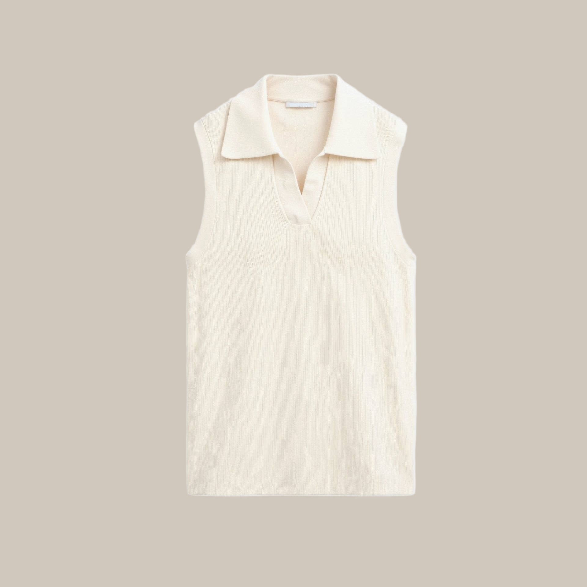 Elevate Your Wardrobe with our sleeveless knit top that seamlessly combines comfort and sophistication. The open V-neckline is beautifully framed by a soft collar, providing a stylish touch to this relaxed-fit design. Perfect for layering or wearing solo, it’s a wardrobe essential for any occasion.